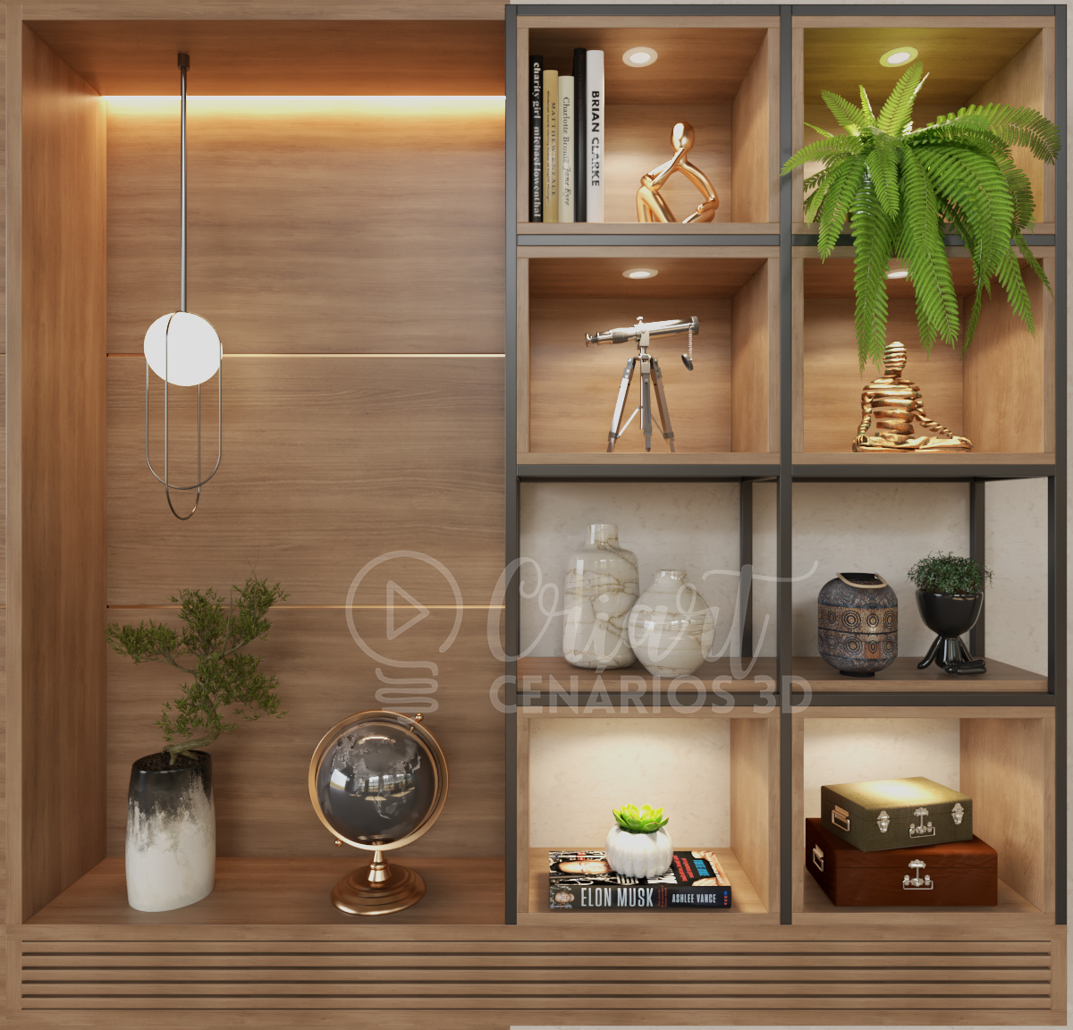 Você pode comprar a arte pronta ou fazer até 3 alterações nos objetos decorativos sem custo adicional .Aproveita para incluir teu logo, fotos, livros, objetos referentes ao teu nicho e até frases!